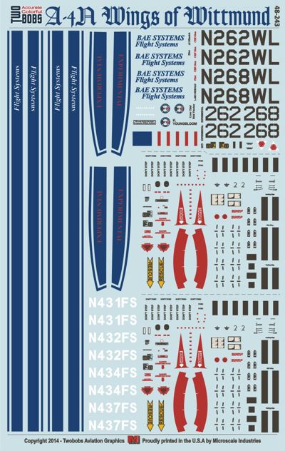 This sheet contains accurate markings to include all stencils and crew names. There are enough markings to build (2) complete Blue/White aircraft as well as both camouflage jets.