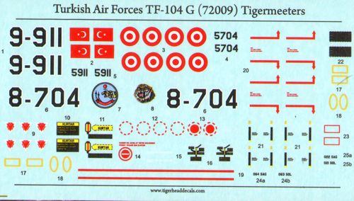 Turkish Air Forces Lockheed TF-104G Tigermeeters. Turkey is one of the very first countries to receive the F-104Gs within the MAP program. As a preparation for the new aircraft the 144th Squadron was organised at the 4th AB in M'rted-Ankara. The first 15 aircraft arrived on May 10th,1963 by sea and they were deployed at the newly founded squadron in July. In July 1963 two TF-104gs arrived and they were also assigned to the same squadron. This was followed by Canadair produced 18 F-104Gs and 2 TF-104Gs. The shipment continued in 1965 with 5 more Canadair built F-104Gs. All of these planes were deployed at the 144th Squadron. In 1968 3 pcs F-104G and 1 pc TF-104G were received from USAF.