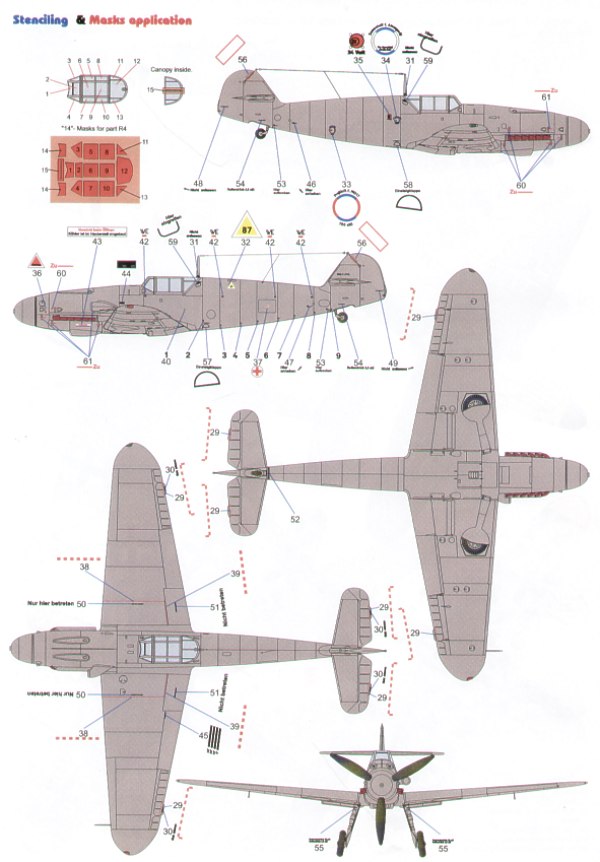 Messerschmitt Bf-109G-2 (4) Yellow 11 9/JG 52 Oblt Herman Graf 3/1943; Yellow 3+- 6/JG 5 Focke-Wulf Fw-Rudolf Muller; Yellow 12 6/JG 5 Oblt Heinrich Ehrler; Both Finland 3/1943; Black 1 15 GJ/52 Franjo Dzel.yellow nose Inc canopy mask