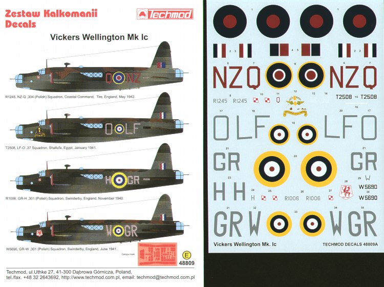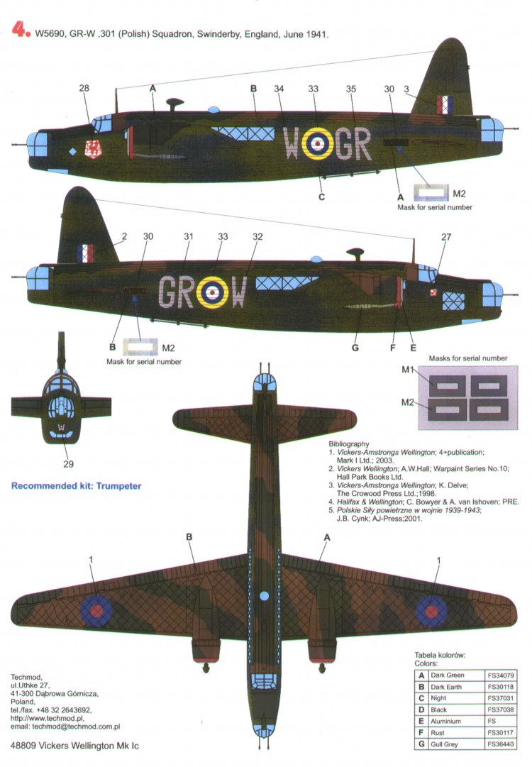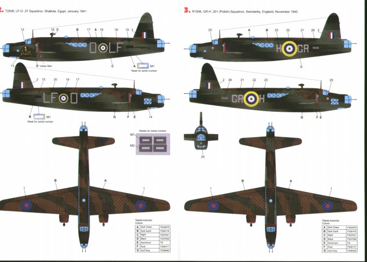 Vickers Wellington Mk.Ic (4) R1245 NZ-Q 304(Polish) Sqn; T2508 LF-O 37 Sqn Egypt; R1006 GR-H and W5690 GR-W both 301(Polish) Sqn Swinderby; Inc glazing paint masks