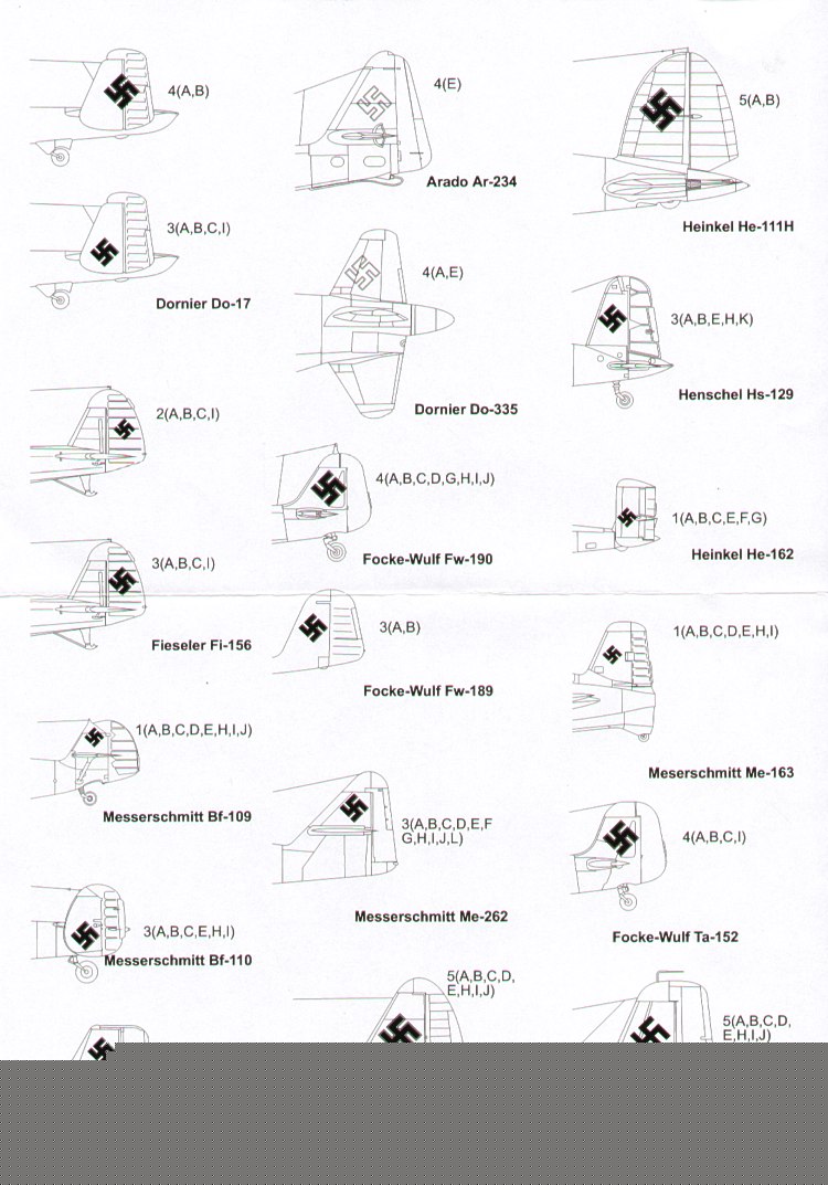 Luftwaffe/German Swastikas. Five sizes 250, 300, 400, 500, 600mm and six styles. See also Xtradecal X72036 for alternative Swastikas.
