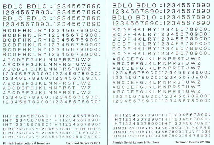 Finnish Air Force Swastika National Insignia. 7 sizes on either white or light grey backgrounds plus 2 sheets of Finnish Serial Letters and Numbers in black