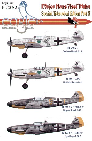 Eagle Cal - EAG32052 - 1:32 | Major Hans 'Assi' Hahn Part III Messerschmitt Bf-109F/Bf-109G (4) Bf-109G-2 II./JG 54 Russia Winter 1942-43; Bf-109G-2/R6 Wr 13949 II./JG 54 Russia Jan 1943; F-2 Wr 9553 Yellow 9 Oblt. Siegfried Schnell 9./JG 2 France 1941; F-4 White 1 Egon Mayer 7./JG 2 France 1941 More | Aircraft decals (military) | Limited Availability | £17.50 | ||