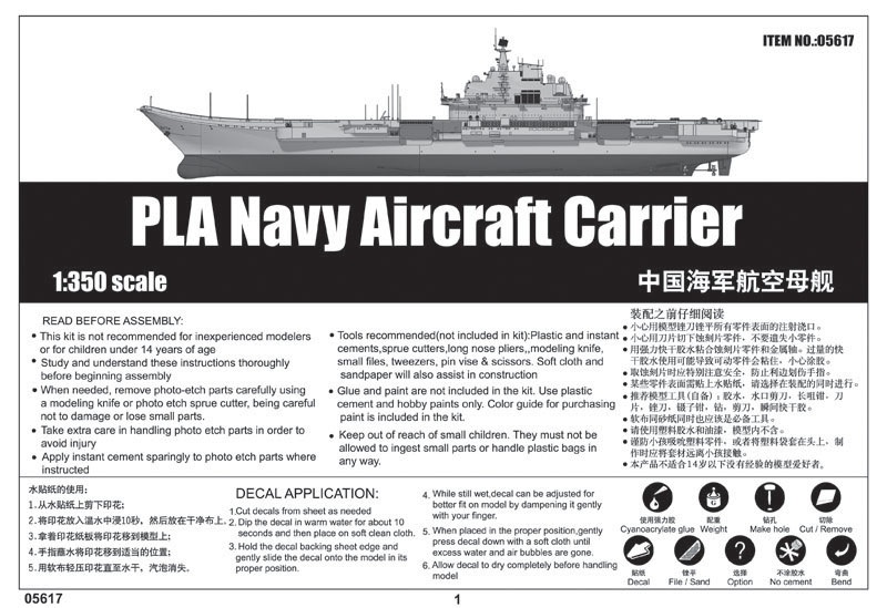 PLA Navy aircraft carrier Shi Lang (ex Varyag) with etched partd
