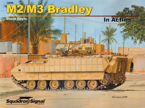 M2/M3 Bradley in Action series. Named for U.S. General Omar Bradley, the armoured M2/M3 Bradley Fighting Vehicle was designed to transport infantry or scouts and was possessed of sufficient firepower to suppress enemy troops and armoured vehicles. Introduced into U.S. Military service in 1981 the vehicle was built around the formidable Bushmaster 25mm chain gun mounted in the vehicle's two-man turret. The vehicle's three-man crew (commander, gunner, driver) was augmented by the ability to carry an infantry team of seven soldiers in the rear compartment protected by aluminium-alloy armoured skin. Powered by a Cummins Diesel V-8 engine, the Bradley had tremendous automotive performance as well. The M2 Bradley the original version of the vehicle was the basis for the M3, also known as a Bradley, a scout vehicle designed for the Cavalry that has the same three-man crew of the M2, but carries only two scouts in the rear compartment. Improvements and armament used on the Bradley's such as the TOW and TOW2 are also covered in the volume, whose 80 pages are packed with over 130 photos.