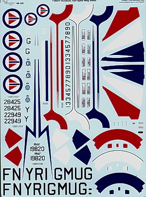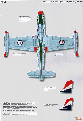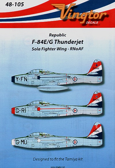 Republic F-84E/F-84G Thunderjet (3) Sola Fighter Wing, R. Norwegian AF. Y-FN Blue nose; G-RI red nose; G-MU white nosey