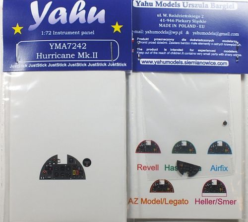 Hawker Hurricane Mk.I late & Mk.II Photoetched instrument panels. Coloured. Ready to fit in a model (JustStick) (designed to be used with FLY, Hasegawa, Hobby 2000 and Revell kits)