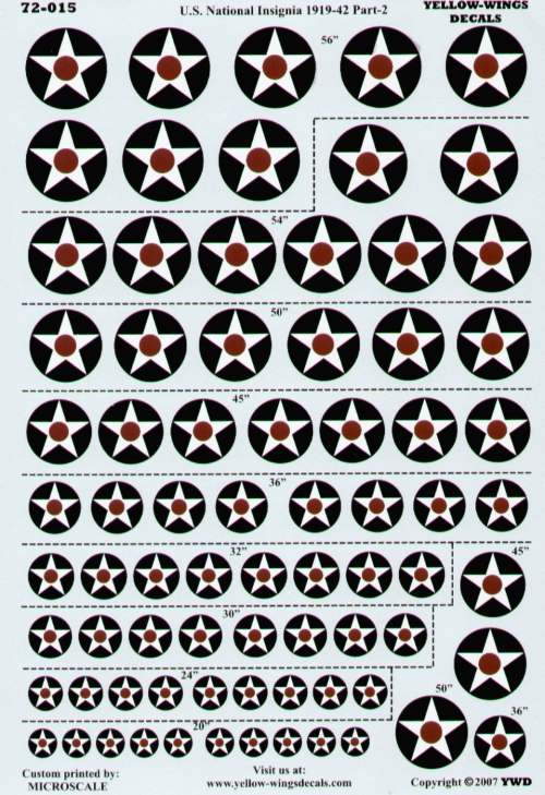 US National Insignia Pre-WWII 1919-1942 Pt 2. White Star with red centre. 9 sizes 20', 24', 30', 32', 36', 45', 50', 54', 56'.