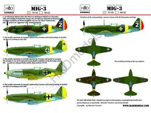 HAD Models - HUN72132 - 1:72 | Mikoyan MiG-3 (with Captured Rumanian and German markings) More | Aircraft decals (military) | Catalogue | £8.99 | ||