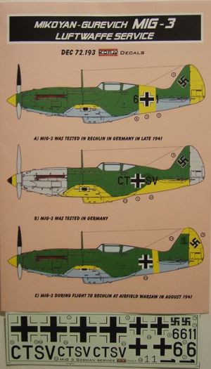 Kora - KORD72193 - 1:72 | Mikoyan MiG-3 in Luftwaffe service More | Aircraft decals (military) | Catalogue | £6.70 | ||